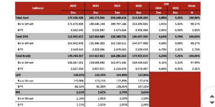 Makassar,1 Maret 2026,beritayang.com-Pada posisi Desember 2025, kinerja perbankan di Sulawesi Selatan pada indikator Total Aset, Dana Pihak Ketiga dan Kredit menunjukkan pertumbuhan