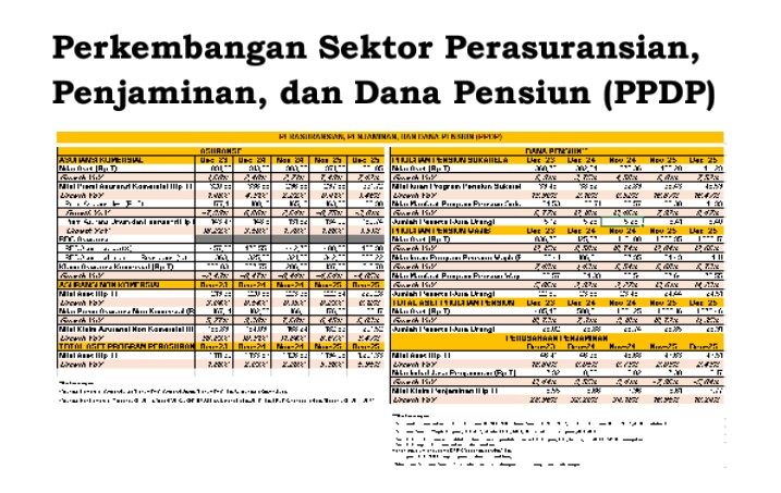 Jakarta,5 Februari 2026,beritayang.com-Pada sektor PPDP, aset industri pada Desember 2025 mencapai Rp1.201,33 triliun atau naik 5,95 persen yoy dari posisi yang sama di tahun sebelumnya, yaitu Rp1.133,87 triliun. Pejabat Sementara Ketua Dewan Komisioner OJK Friderica Widyasari Dewi Mengatakan Dari sisi asuransi komersil, total aset mencapai Rp981,05 triliun atau naik 7,42 persen yoy. Adapun kinerja asuransi komersil berupa akumulasi pendapatan premi pada periode Desember 2025 mencapai Rp331,72 triliun, atau terkontraksi 1,46 persen yoy, terdiri dari premi asuransi jiwa yang terkontraksi sebesar 3,81 persen yoy dengan nilai sebesar Rp180,98 triliun, dan premi asuransi umum dan reasuransi tumbuh sebesar 1,51 persen yoy dengan nilai sebesar Rp150,74 triliun.