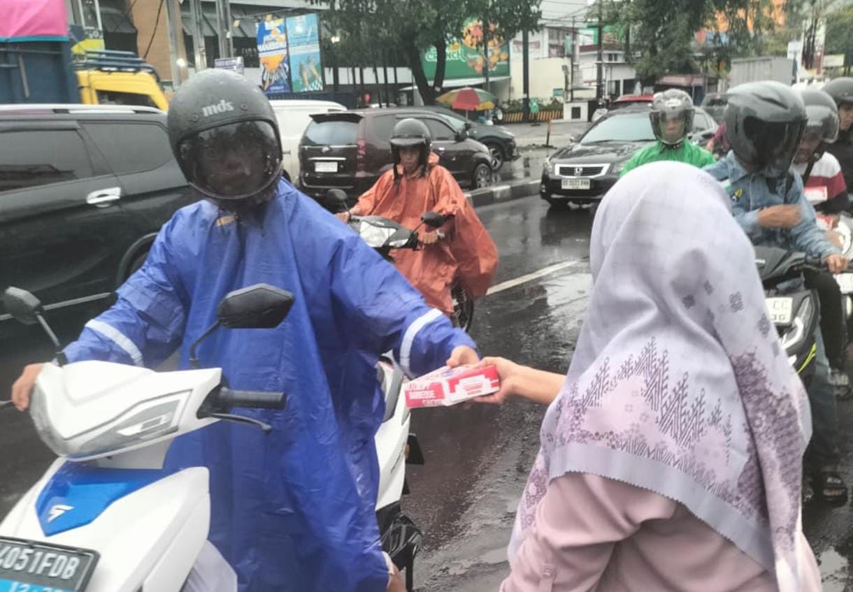 Kegiatan yang dimulai menjelang waktu berbuka puasa ini menyasar para pengendara roda dua, pengemudi ojek online, hingga pejalan kaki yang melintas di salah satu jalur tersibuk di Kota Makassar tersebut.